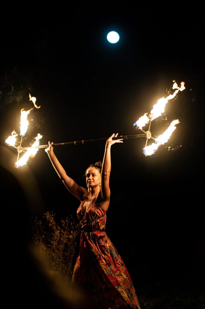 Dnešní lineup završuje ohňová show Anety Imediade na prostranství před budovou. Aneta nám s pochodní v ruce vypráví svůj dojemný příběh a následuje vášnivý tanec s ohněm za doprovodu její vlastní písně Šamanka. V posvátném klidu přírody, pod oblohou posetou hvězdami, za svitu superúplňku je to nadpozemský zážitek.